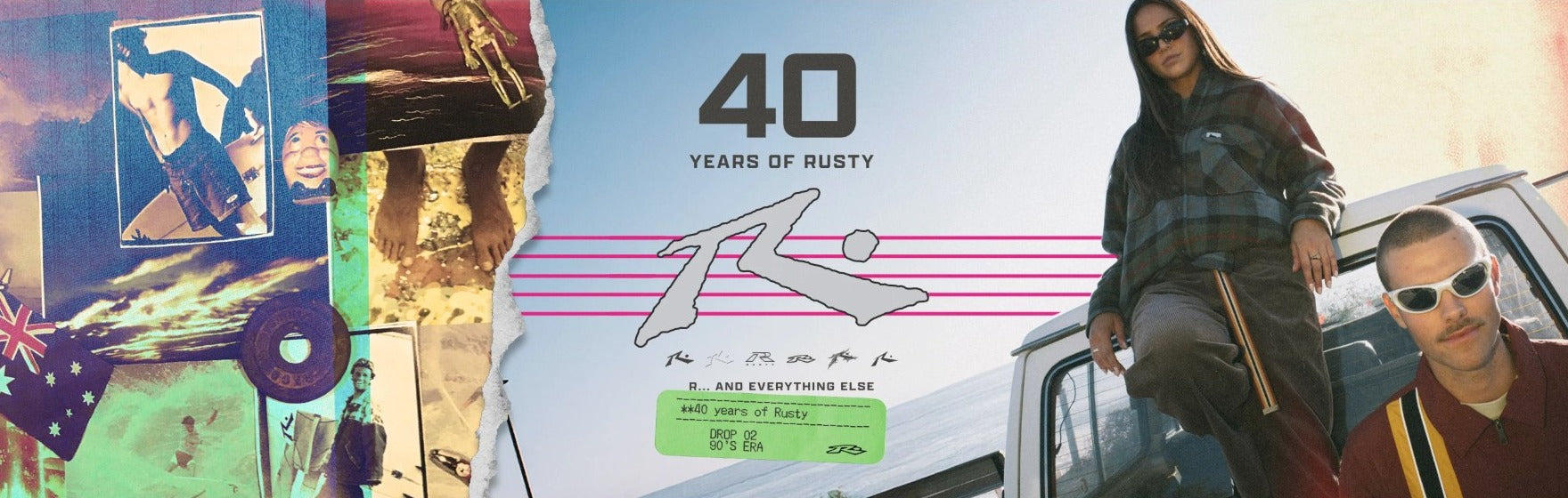 We're bringing back timeless designs that have defined generations of surf culture, paying tribute to Rusty Preisendorfer's vision and the enduring spirit of surfing. These pieces represent four decades of innovation, creativity and a deep connection to the waves. This collection celebrates 40 years of Rusty, honouring the brand's legacy and iconic 'R Dot' that started it all.