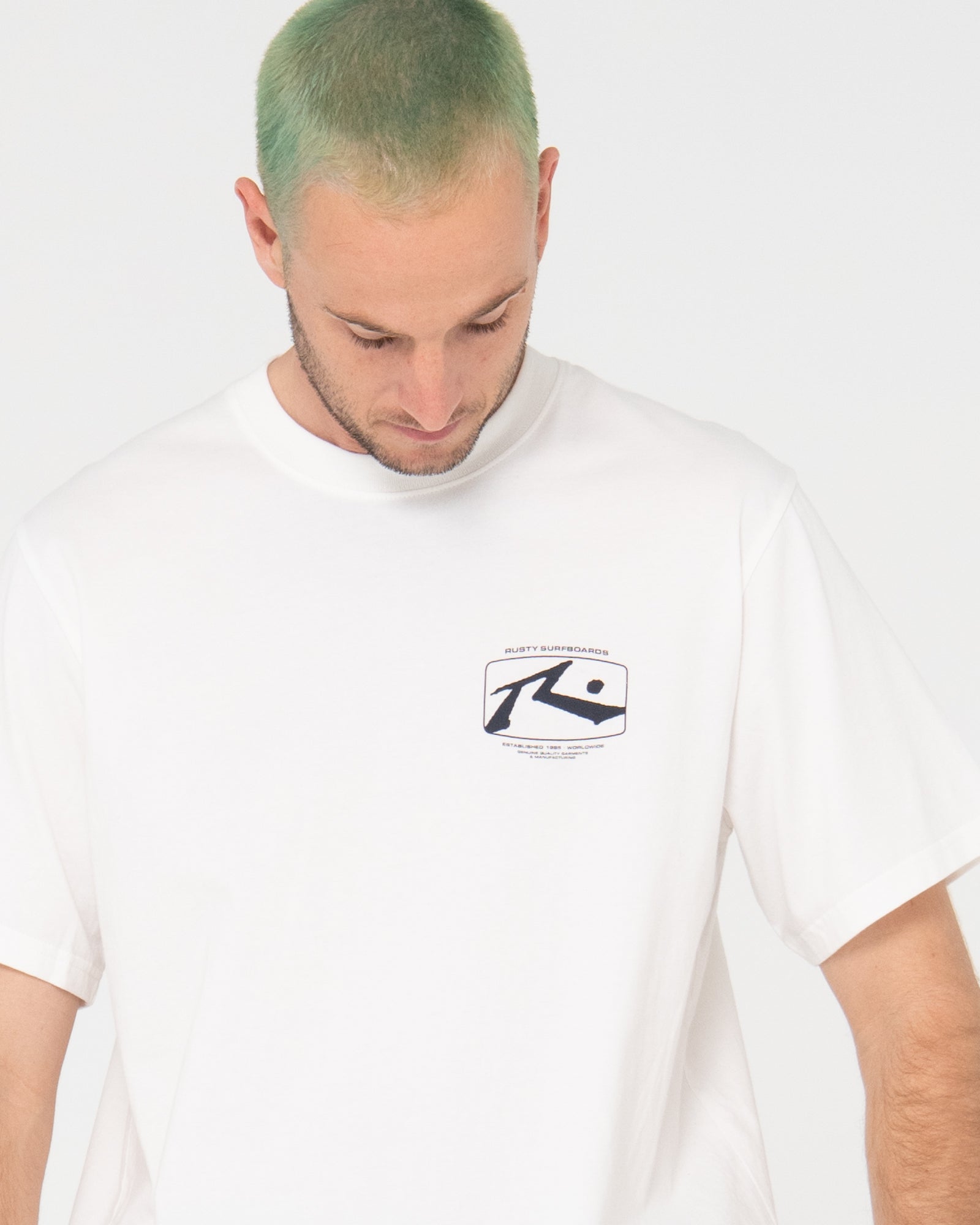 T-shirt standard fit and rusty print - pre-shrunk. Material: medium weight cotton jersey
