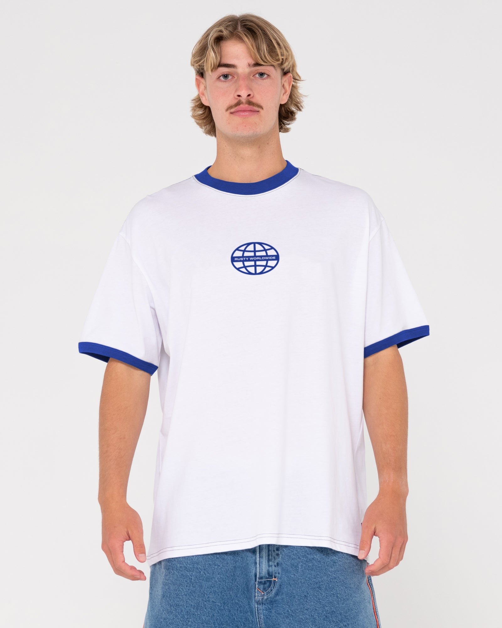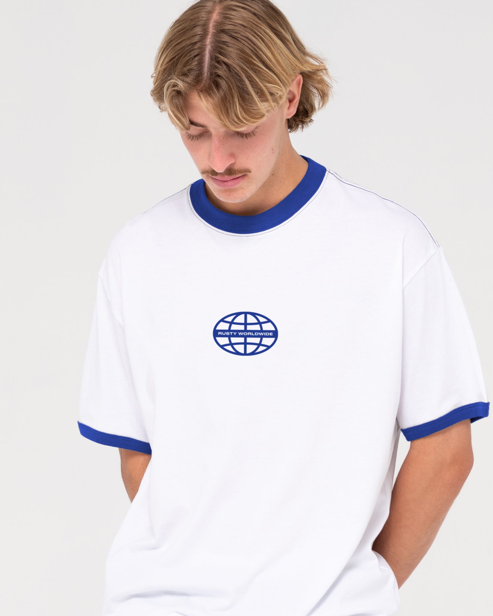 Loose-fitting ringer T-shirt with rusty chest print - pre-shrunk. Material: 160 g/m² cotton jersey - 100% cotton