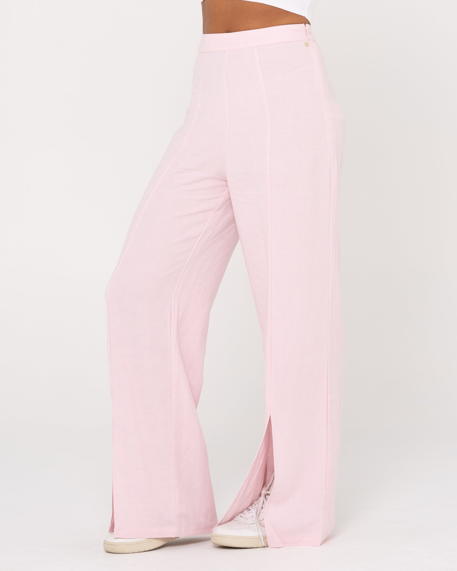 high waist fitted pant with side pockets and slit at the hem.Material & care instructions