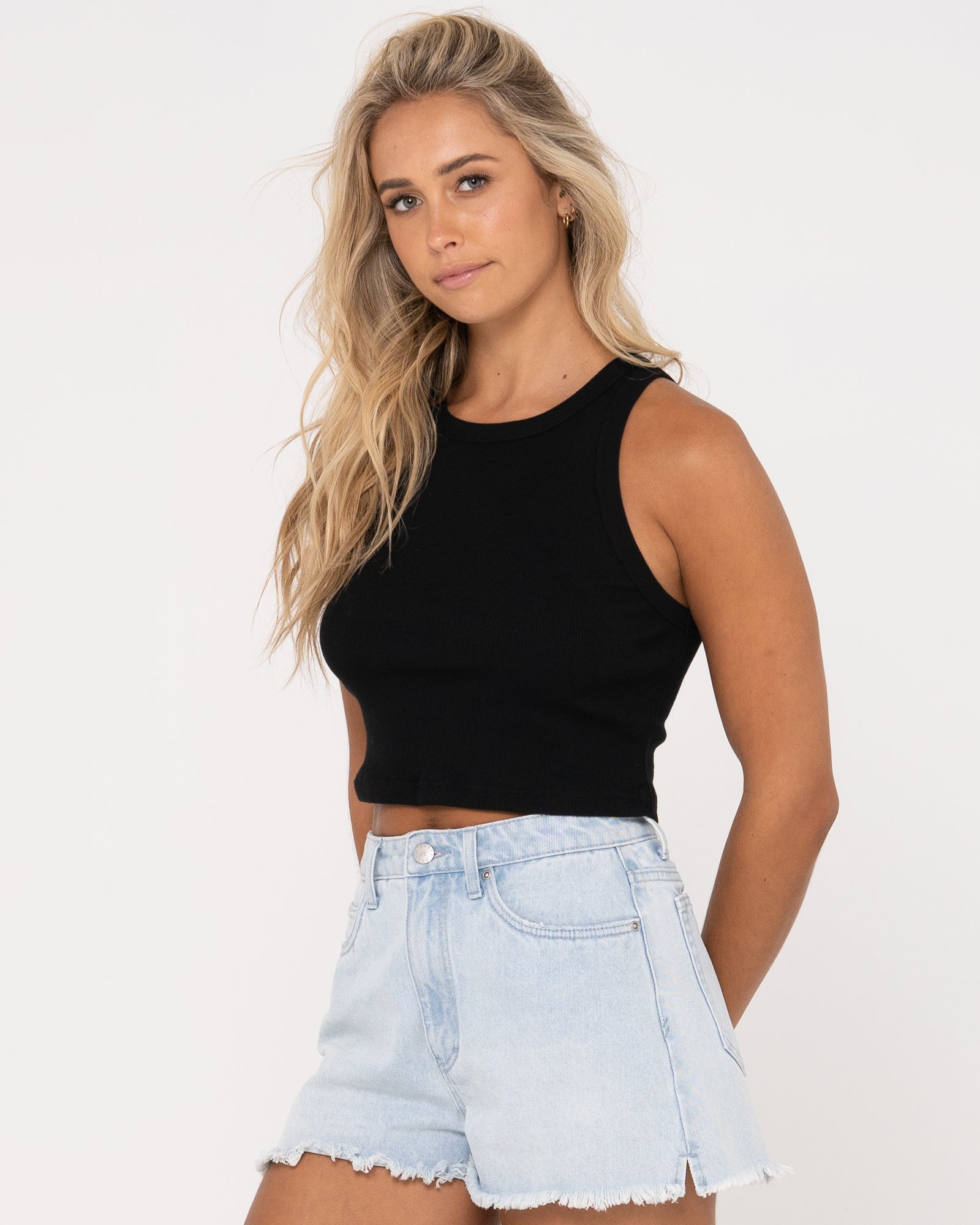 We LOVE a simple racer tank. Pair it with your favorite skirt, wear it under a cozy sweater for extra warmth, or pair it with your favorite jeans or comfy pants for your everyday look. The Rusty Blanks Racer Tank is made from a versatile ribbed cotton jersey with just the right amount of stretch and is available in 4 different colors to match any outfit in your closet.