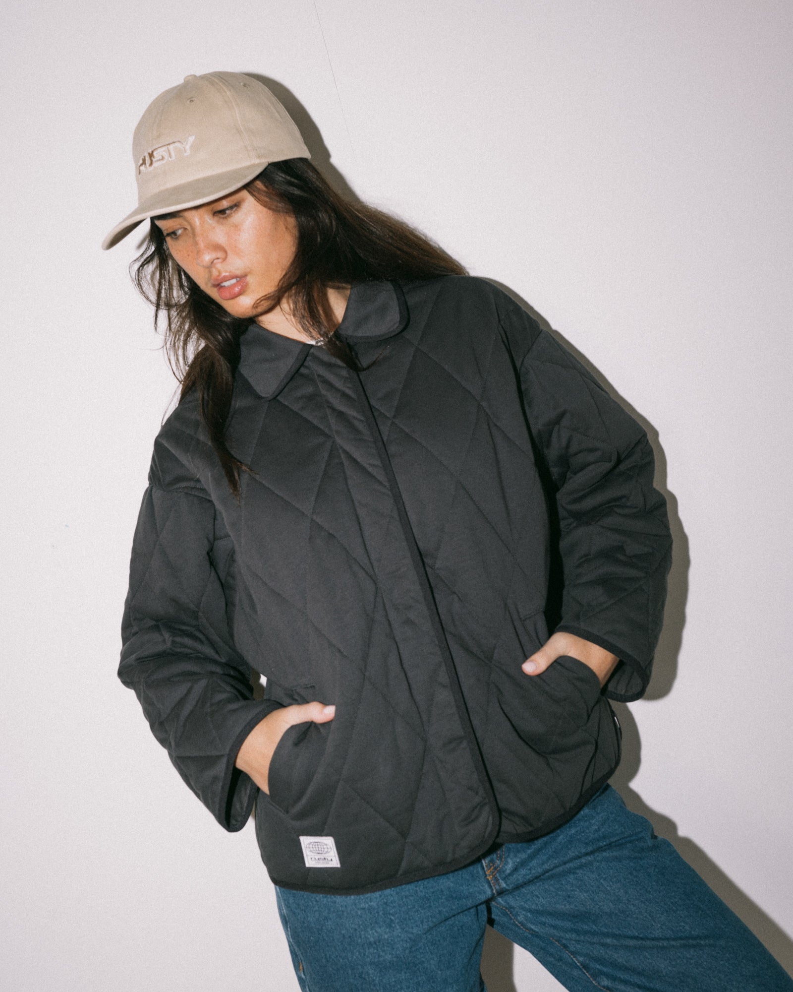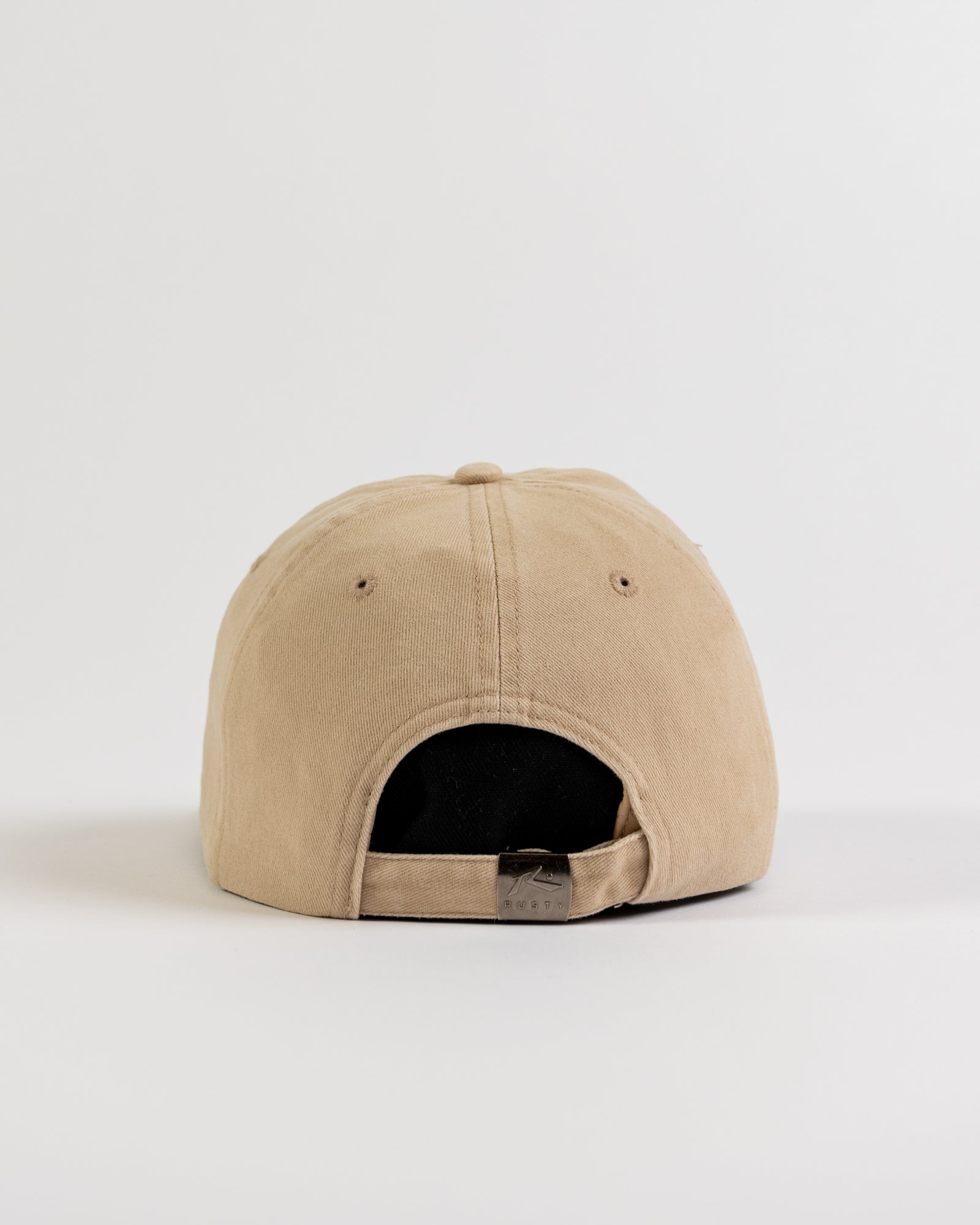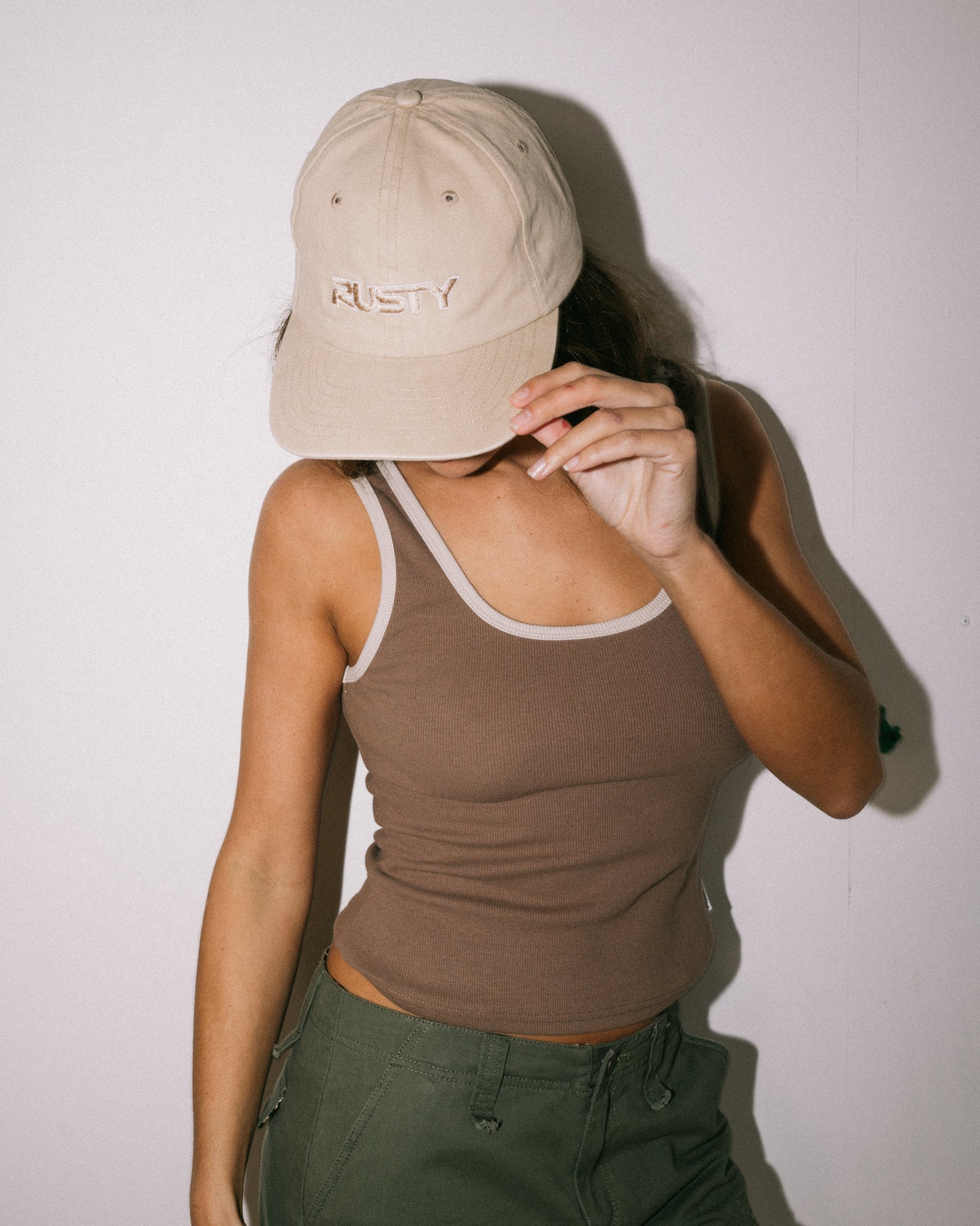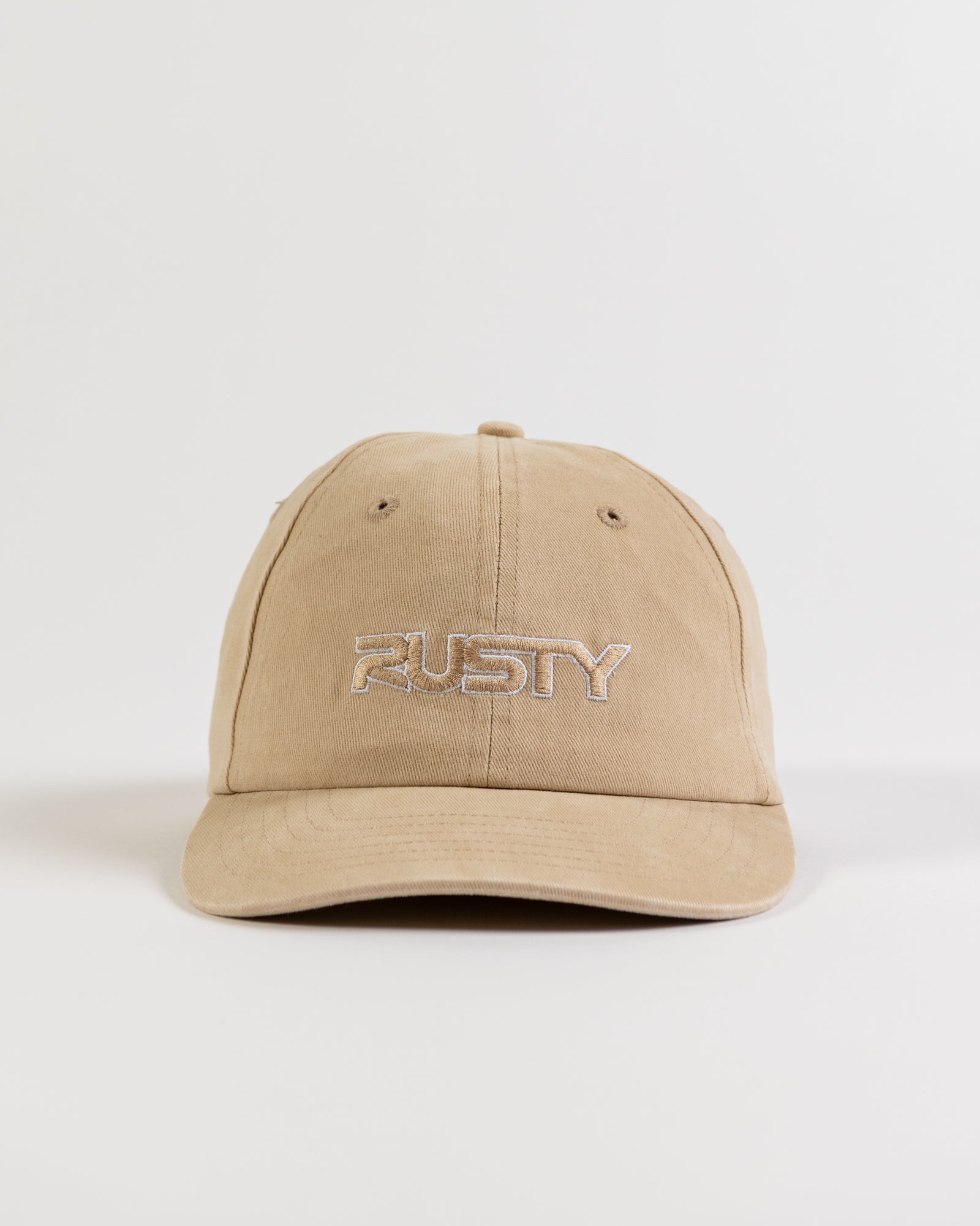 Cap with embroidered Rusty logo and adjustable strap on the back in the versatile color Oatmilk.