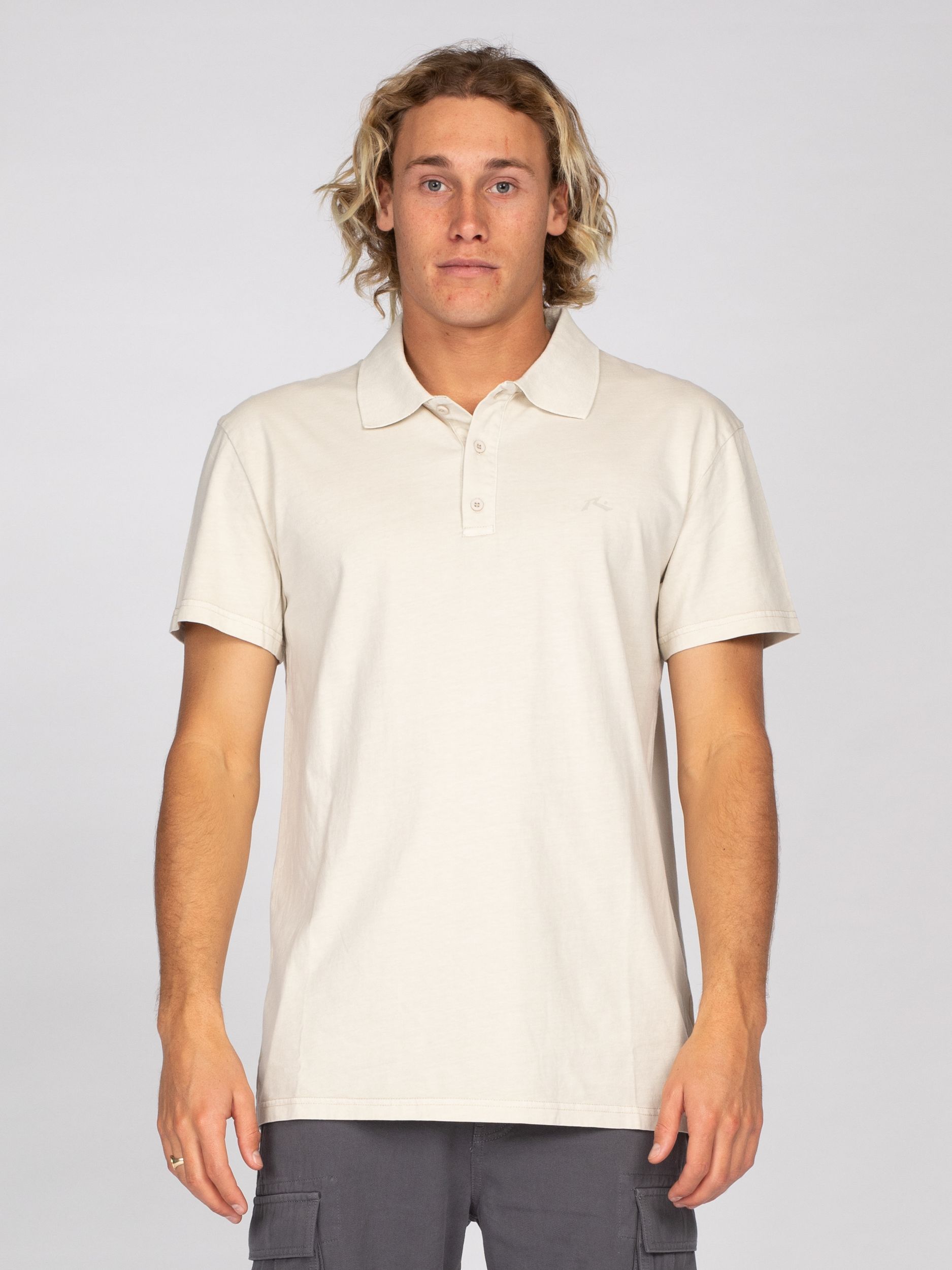 Short sleeve polo, standard fit, with rusty print - overdyed finish. Material: cotton jersey - medium weight