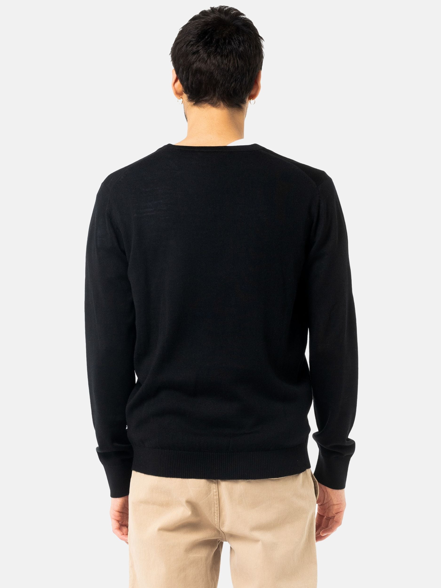 Standard fit knit with V-neck. Material: Lightweight wool blend yarn
