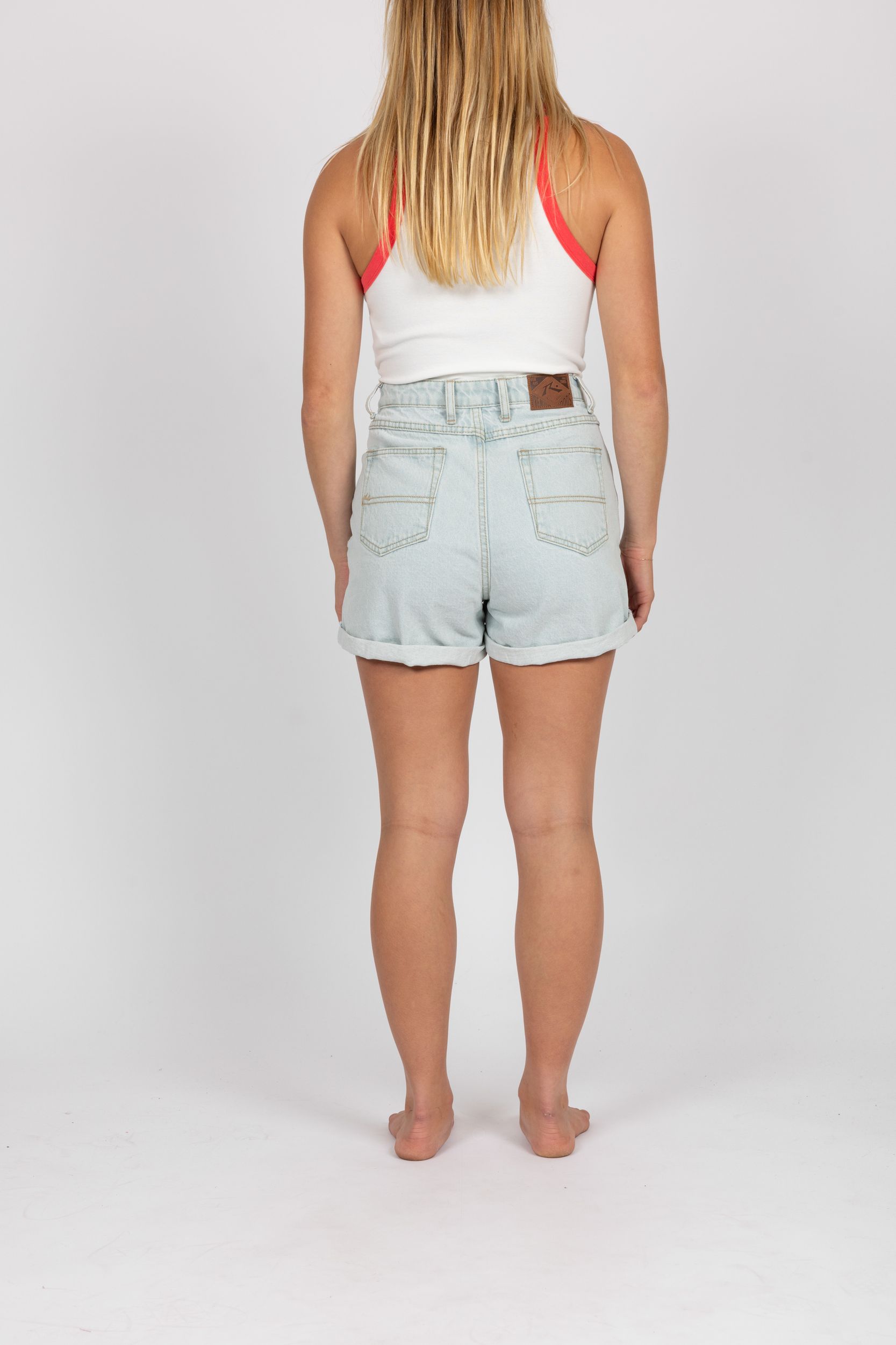 High-rise denim shorts with rolled-up waistband. Material: 100% cotton