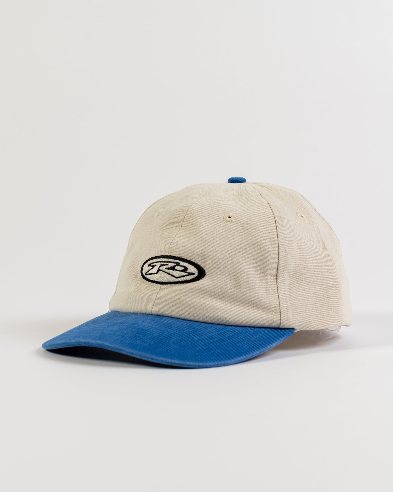 Two-tone, adjustable cap with vintage wash and rusty embroidery. Material: cotton
