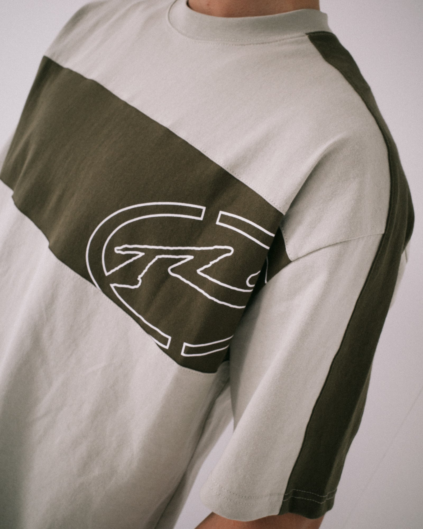Langarm-T-Shirt, Standard Fit, mit Rusty-r Stickerei – Vorgeschrumpft. Material: Baumwollgarn, Dye-Streifen – Mittelschwer