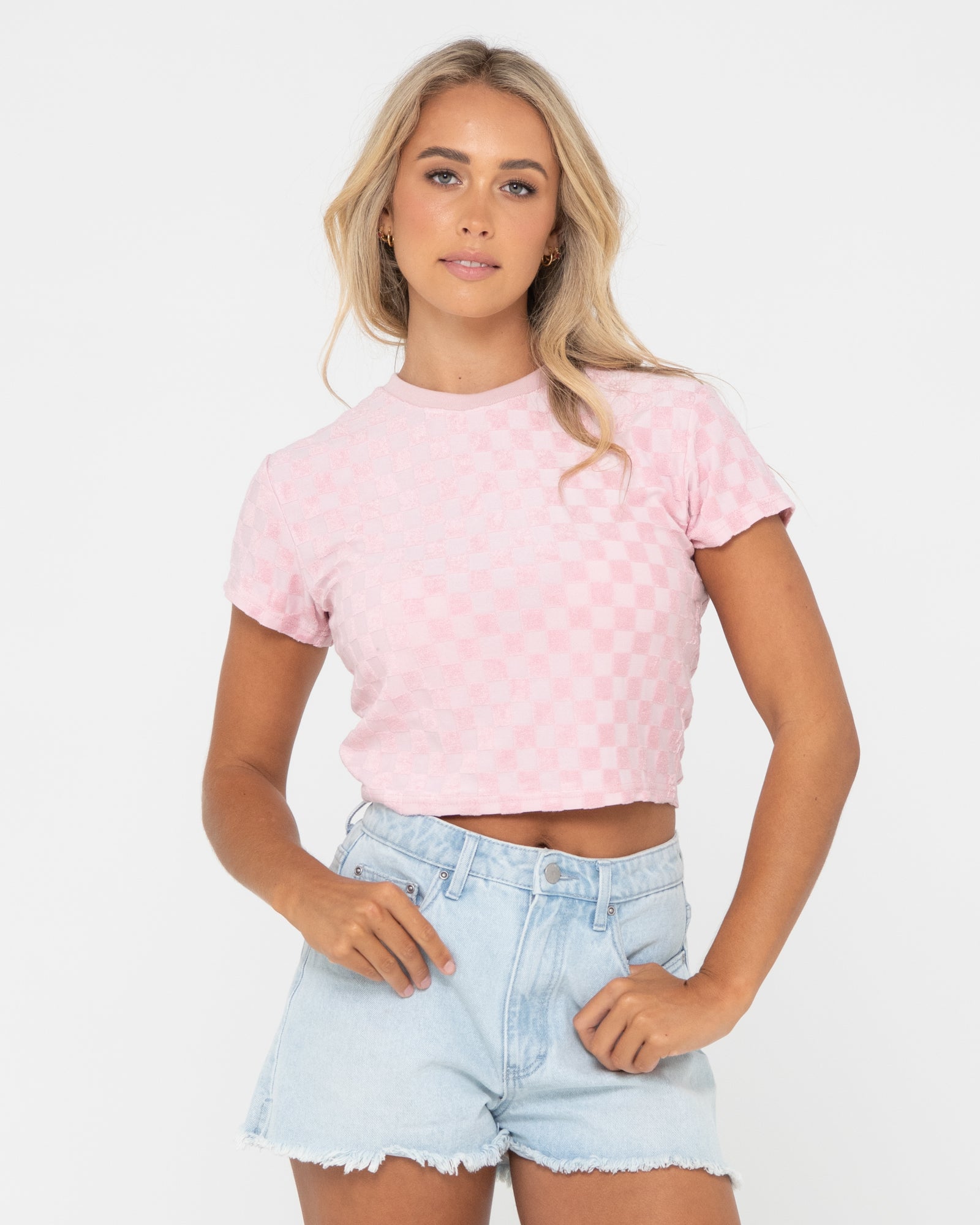 Short Sleeve Cropped Baby Fit Tee.material & care instructions