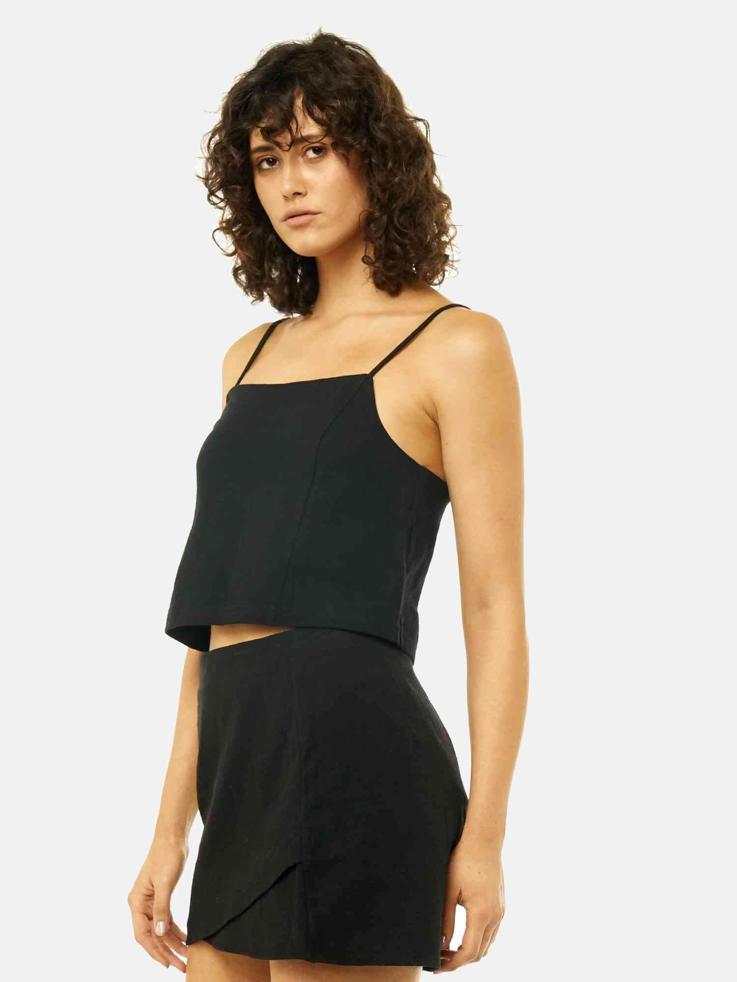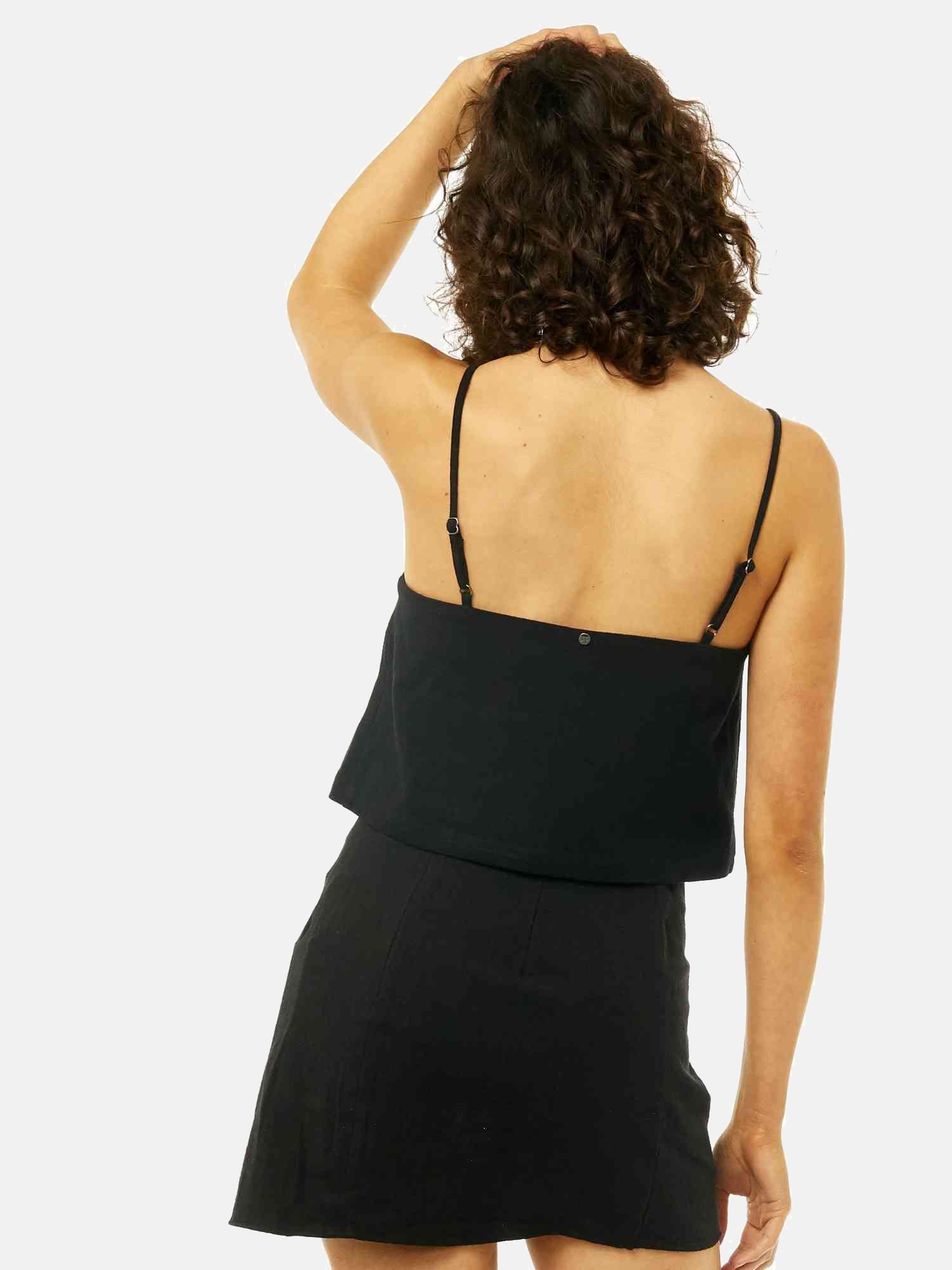 Slip top with panel details - Adjustable straps and rusty metal embellishments. Material: Linen/cotton - Medium weight