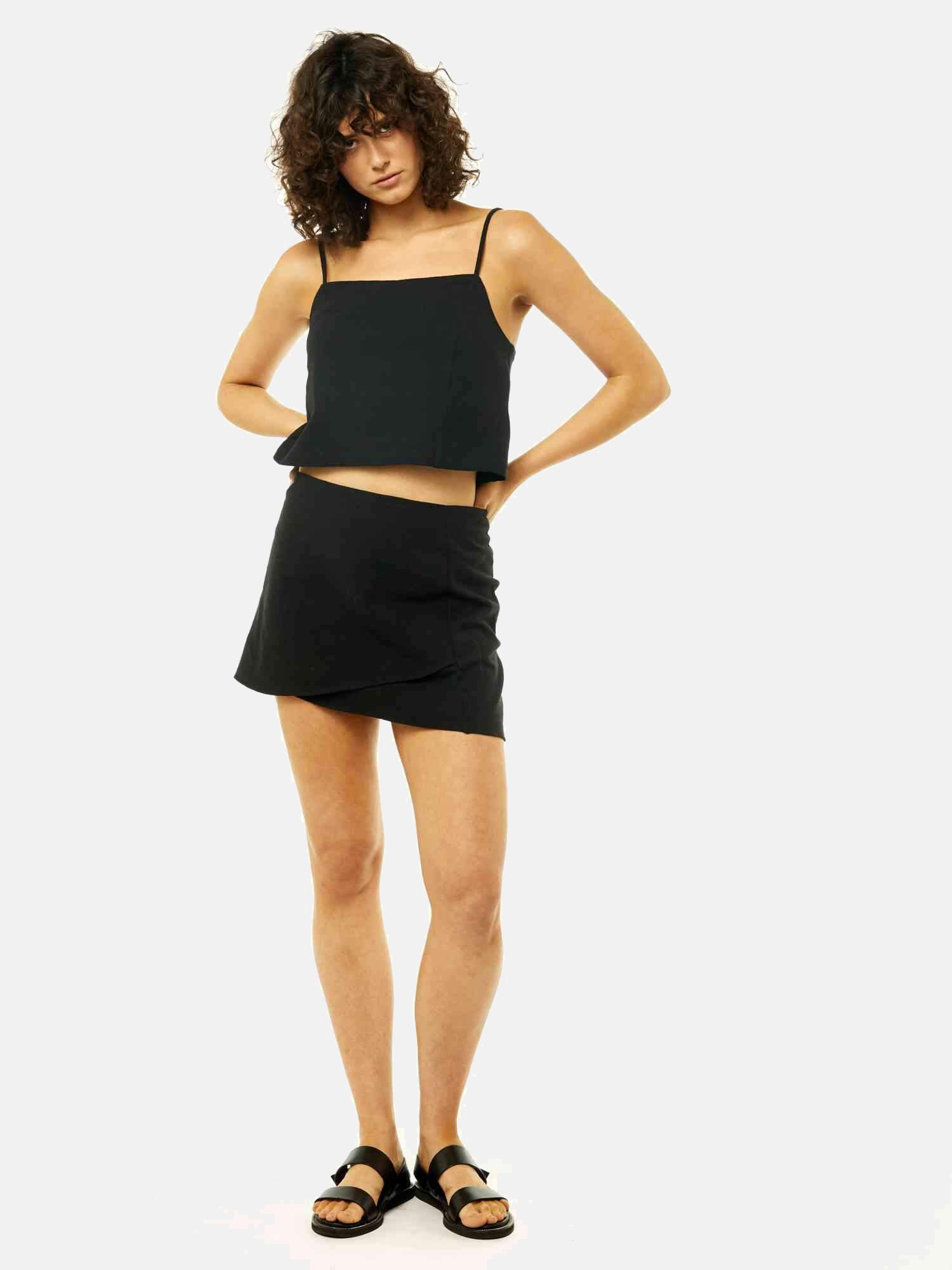 Model measurements Mia wears size S. She is 180 cm tall, has a chest measurement of 83 cm and a waist of 61 cm.