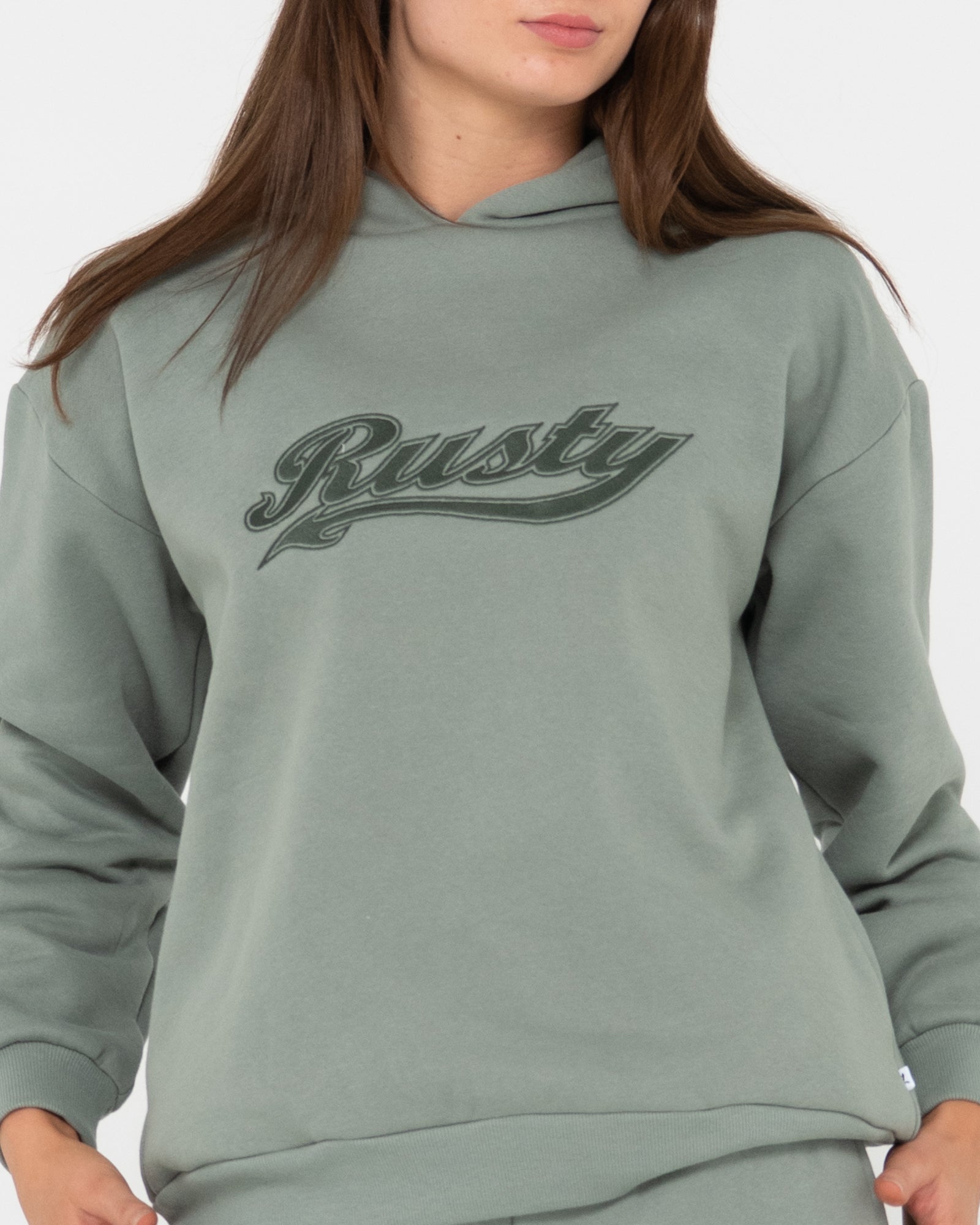 Oversized hooded fleece with side pockets and Rusty embroidery on the front. Material: 80% cotton 20% polyester brushed fleece