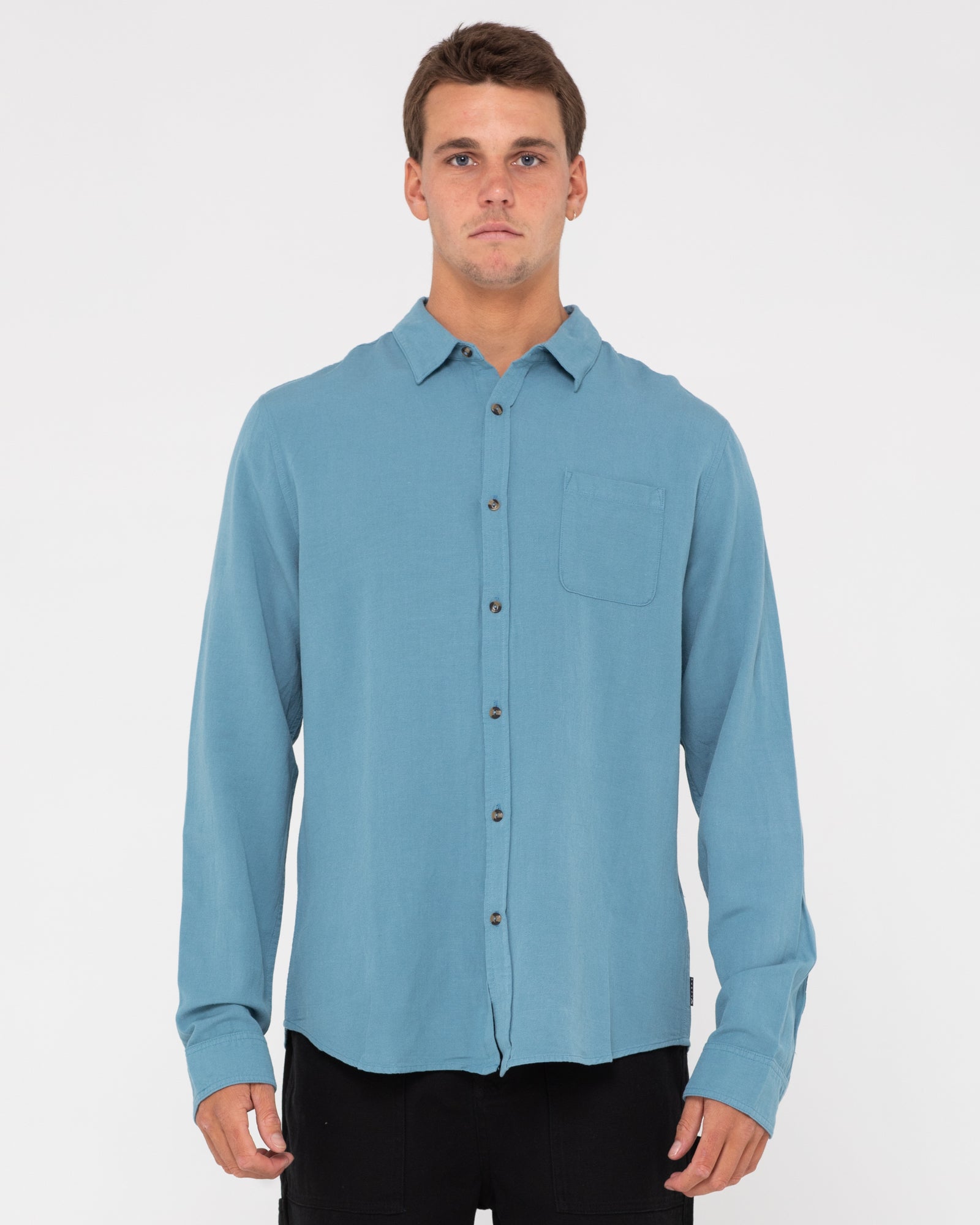 Standard fit long sleeve shirt - silicone washed. Material: Linen blend (6 Oz rigid)