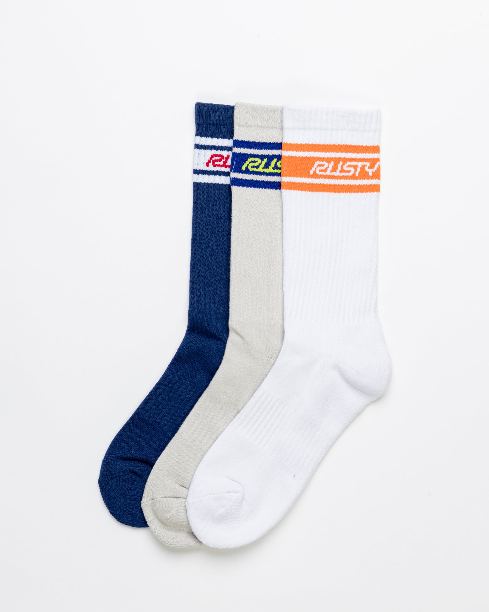 Four-pack of socks with Rusty logo. Material: cotton/polyester/elastane