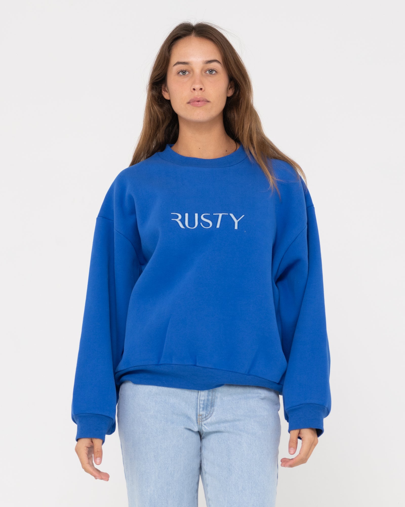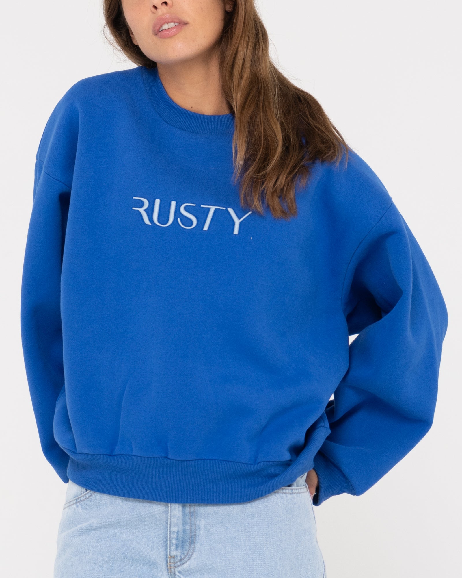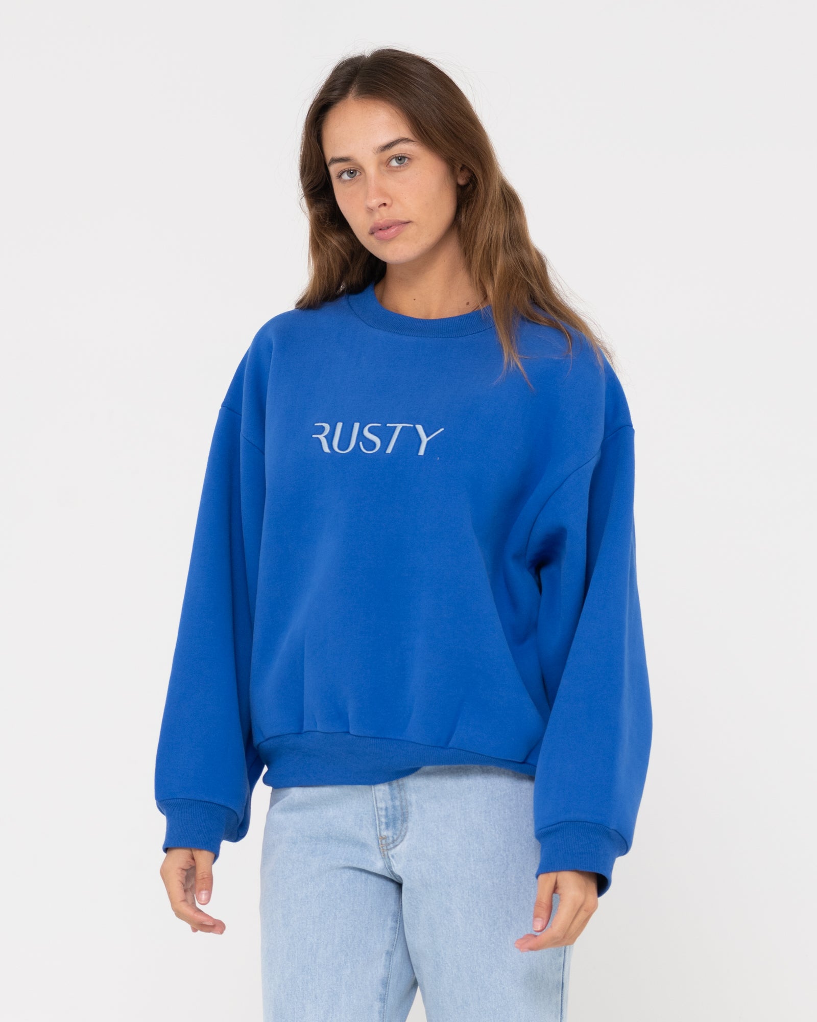 We've designed the perfect sweater to keep you toasty warm all season long. The Rusty Script oversized crew neck fleece has an oversized fit, Rusty embroidery, dolman sleeves and a crew neck.