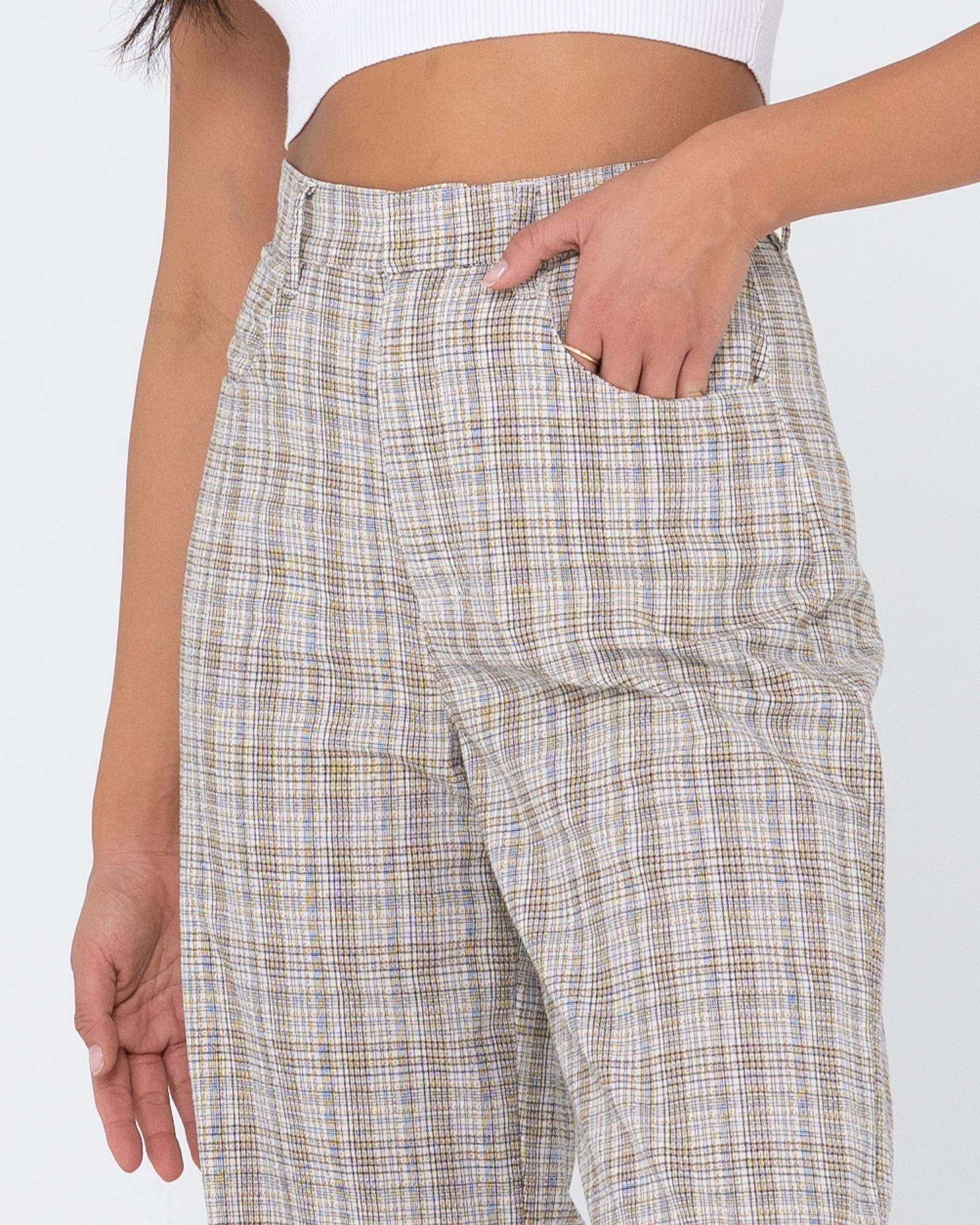 High-waisted trousers with a wide, straight leg, pockets and belt loops. Material: 100% woven cotton