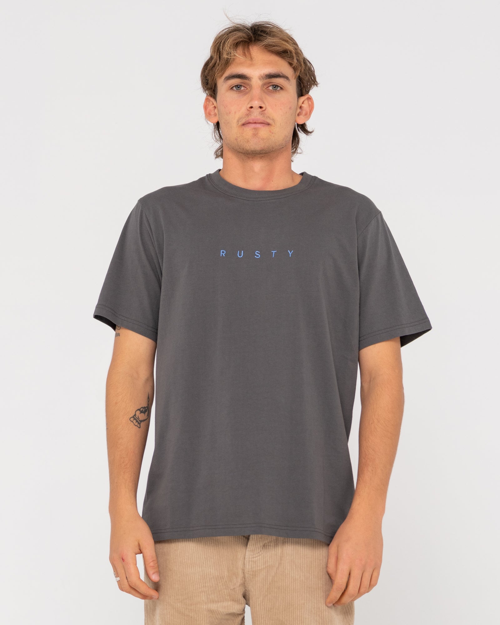 T-shirt, standard fit, with Rusty print - pre-shrunk. Material: cotton jersey - medium weight