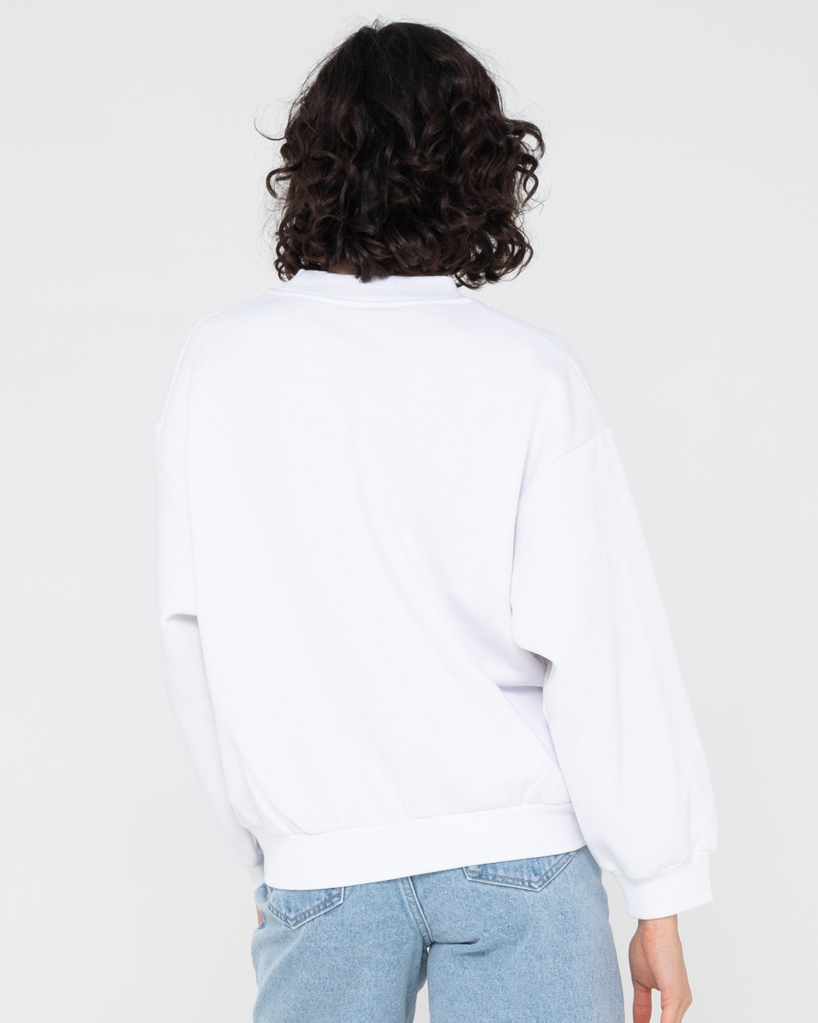 The Sunset Palm Oversize Crew Neck Fleece will be your new favorite pullover, whether you're cozying up after a dawn or dusk swim or adventuring to your favorite spots. It has an oversized fit with dolman sleeves and our custom Rusty print on the front.
