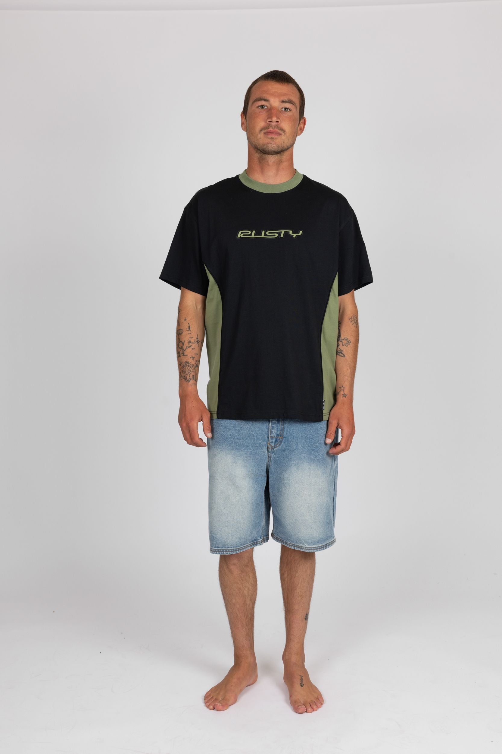 Relaxed-fit shortsleeve with block colors and Rusty logo on the chest - pre-shrunk. Material: 100% cotton - medium weight