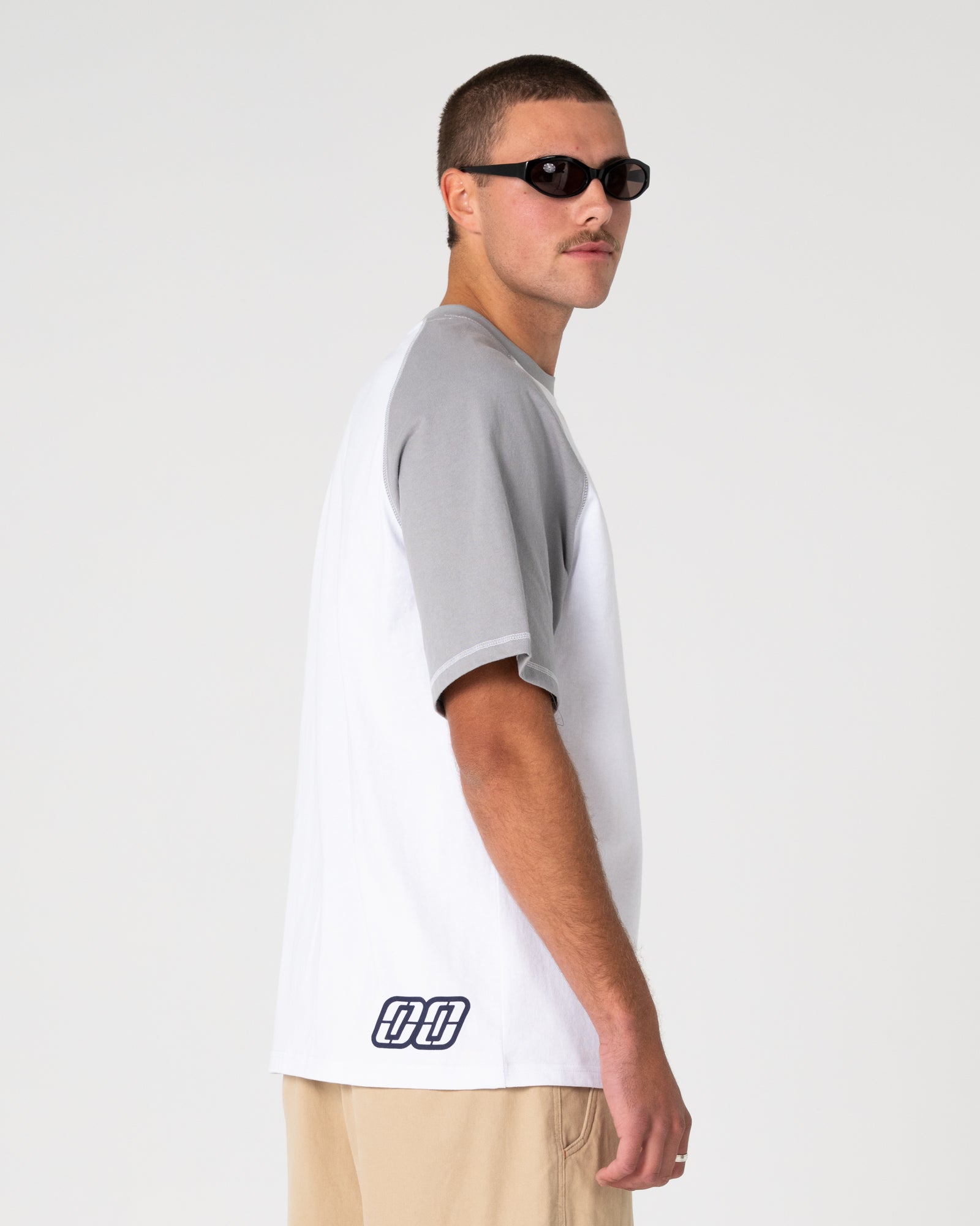 Langarm-T-Shirt, Standard Fit, mit Rusty-r Stickerei – Vorgeschrumpft. Material: Baumwollgarn, Dye-Streifen – Mittelschwer