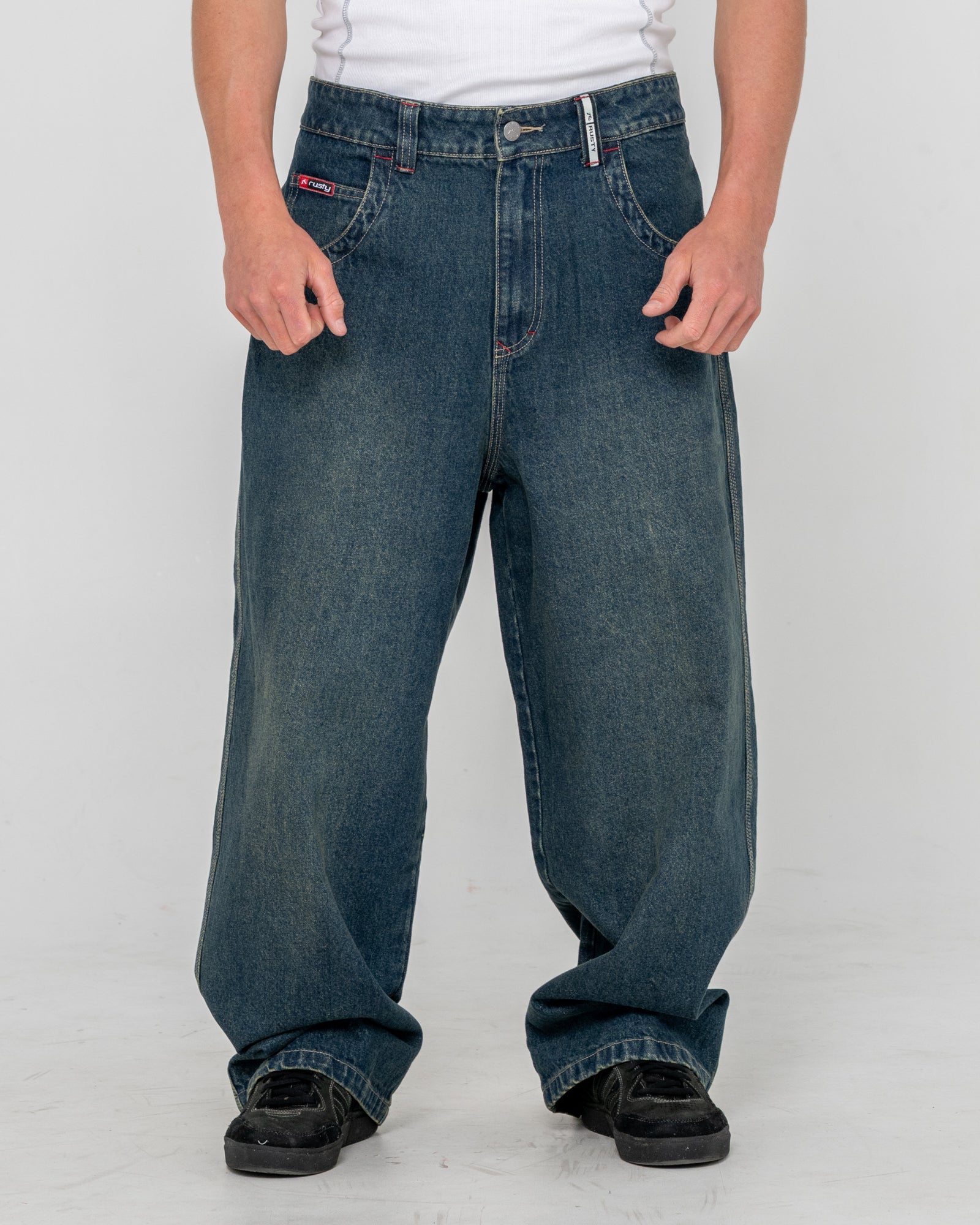 Baggy Fit Denim Jeans - mit farblich abgesetzten Nähten und Logostick auf der Rückseite.